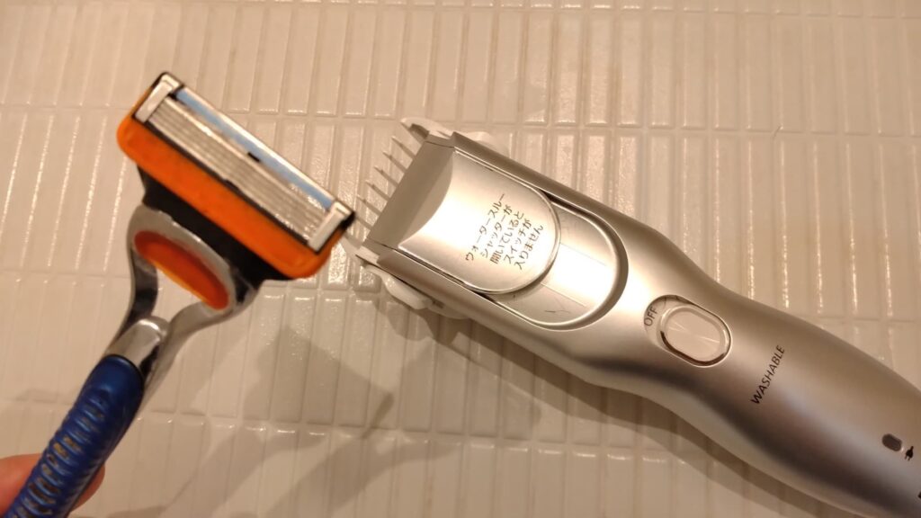 バリカンである程度短くしてからカミソリで深剃りしました